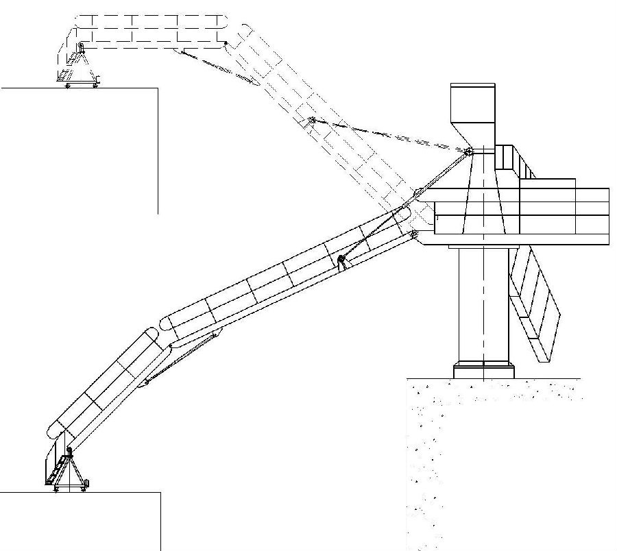 消防噴淋系統(tǒng)等組成,升降回轉(zhuǎn)機(jī)構(gòu)可沿塔架升降。適用于2~30萬(wàn)噸級(jí)碼頭。