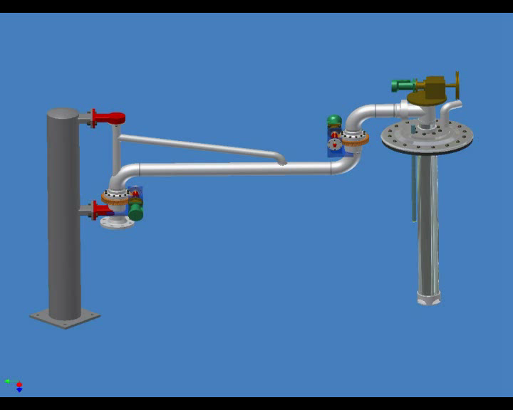 性能特點(diǎn):采用懸臂式結(jié)構(gòu),采用氣動馬達(dá)或液壓馬達(dá)驅(qū)動鶴管內(nèi)外臂運(yùn)動,垂管部分為伸縮套管,可實(shí)現(xiàn)三個坐標(biāo)的自由移動??膳鋫涿芊饷?、回氣管、高液位報警等附件。